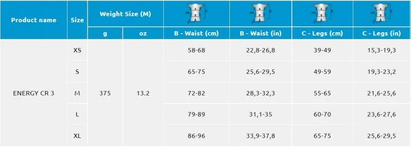 Energy CR 3 è regolabile in vita e cosciali attraverso fibbie rapide autobloccanti ed estremamente comodo grazie agli interni imbottiti termoforati.