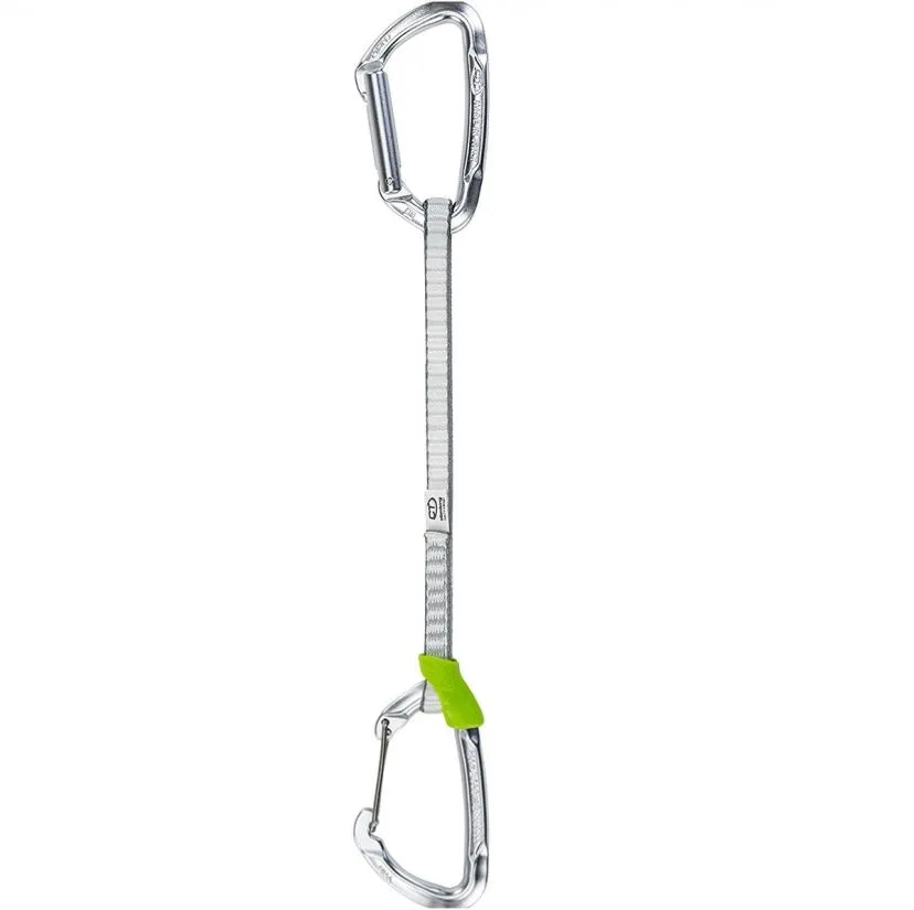 CT rinvio Lime Dy M arrampicata. Polivalente e leggero, è ideale per l’arrampicata sportiva, per lavorare i tiri e per l’alpinismo. Il moschettone superiore è dotato chiusura catch-free, che ne facilita l’aggancio e lo sgancio senza pericolo che la corda o altri ancoraggi si impiglino; mentre il moschettone inferiore di leva a filo. La fettuccia, leggera e resistente, ha uno spessore di 11 mm. Il ferma fettuccia, in gomma, ne evita la rotazione e la protegge dall’usura.