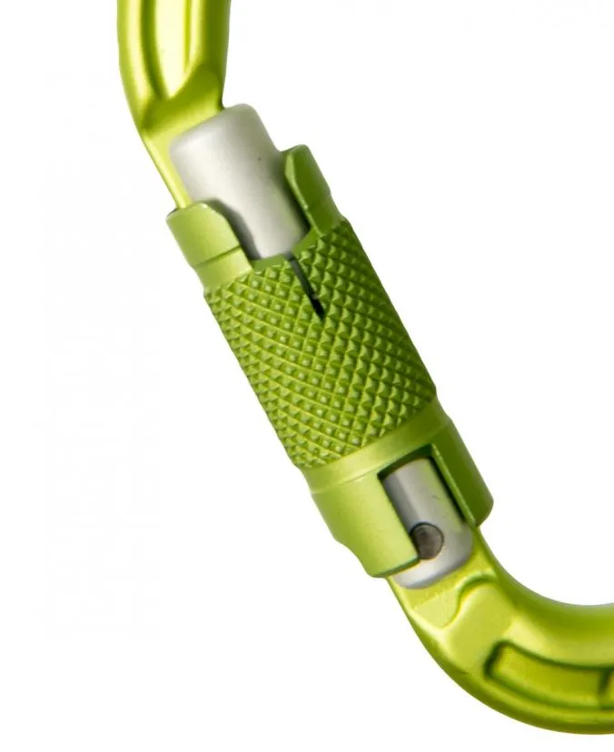 Edelrid pensa ad un moschettone che puoi maneggiare anche con una sola mano, che richiede due azioni per essere aperto: rotazione e successiva pressione della leva.