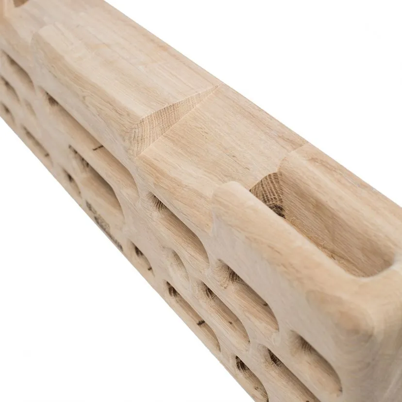 Ecco infatti perchè trovi buchi per 2, 3 e quattro dita di varie profondità: 15, 25 e 40 mm. Questo rende il trave anche adatto anche a chi ha iniziato a scalare da un po’ meno tempo e non ha ancora i tendini delle dita formati. Iniziate dalla presa un po’ più buona per evitare possibili infortuni e poi mano a mano progredite. Vedrete che questo strumento vi farà bene!