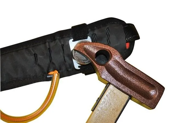 Kong Clack ti permette di organizzare l’attrezzatura in ferro senza il rischio che qualcosa si impigli, di prelevare al volo un chiodo da ghiaccio, di agganciare e sganciare rapidamente un martello, usando una sola mano.