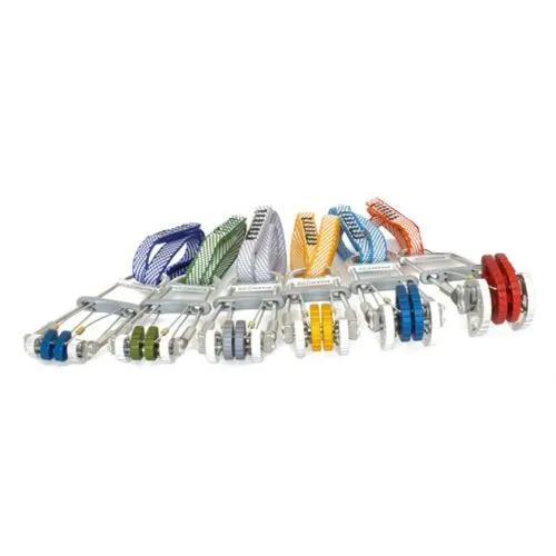 Il Kouba Permon è un friend a doppia asse, meccanismo che consente una maggiore espansione del range e un miglior ancoraggio alla parete. Ideale per arrampicata su roccia. Ad ogni misura corrisponde un colore diverso per facilitarne l’identificazione. Questo set contiene le misure da 0.25 a 4.