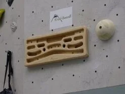 La cosa molto interessante è che trovi anche prese inclinate verso il basso, quindi in negativo. questi ti permottono di allenarti su delle inclinazioni che trovi spesso in falesia ma sulle quale è molto difficile allenarsi sia a casa che in palestra.