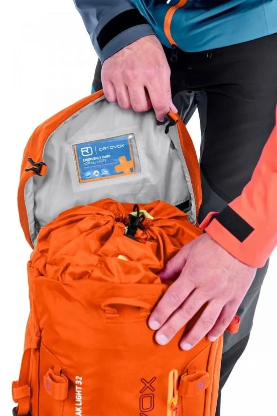 Ortovox sempre attenta alla tua sicurezza, integra nel Peak Light 30 un cartellino d’emergenza e un fischietto di emergenza nella cintura pettorale.