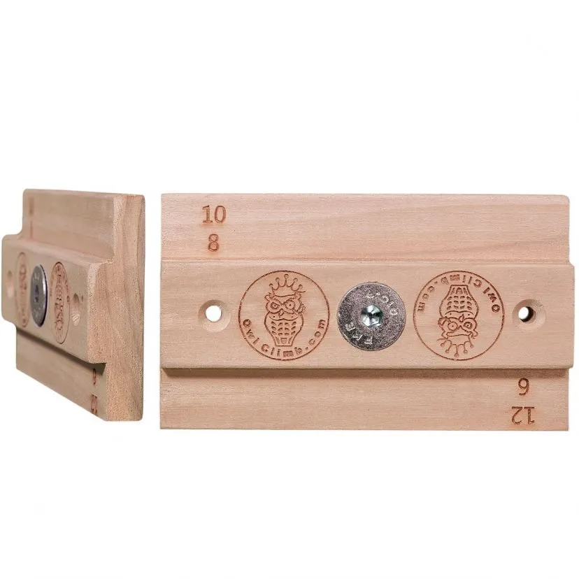 Owl Climb Strong Fingers sono prese in legno per l’allenamento di arrampicata pensato per gli arrampicatori più esperti. Possono essere facilmente installate mediante una vite fornita e hanno due possibili lati: da una parte ci sono due tacche da 10 e 8 mm di profondità mentre dall’altra 12 e 6 mm.