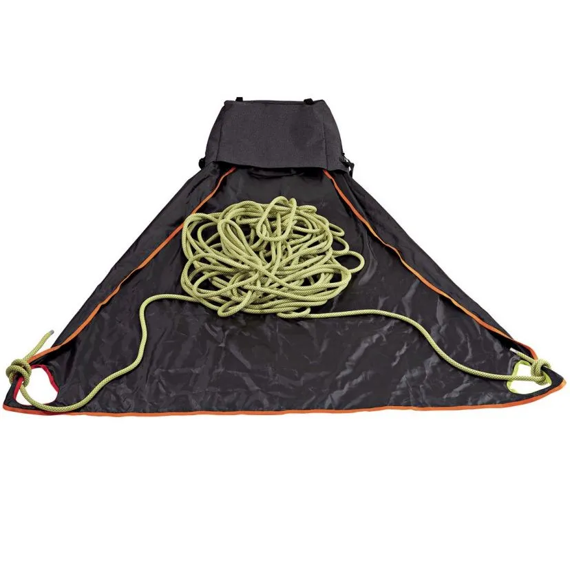 All’interno trovi un telo portacorda removibile delle dimensioni di 140 x 140 x 50 cm fornito di manici ai tre angoli, di cui due colorati per identificare le estremità della corda; una tasca con chiusura zip per gli effetti personali. All’esterno una tasca è ritagliata sulla patella per oggetti da recuperare al volo, una robusta manigia per un trasporto a mano, tracolla rinforzata e regolabile.