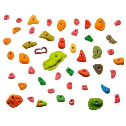 Il set Smog contiene quarantasei prese miste da arrampicata, realizzate in poliestere.