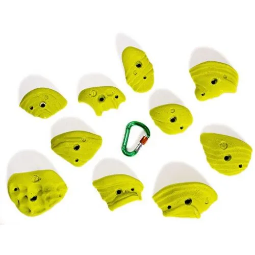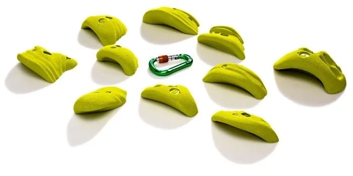 Il set Smog contiene dieci prese maniglie grandi da arrampicata, realizzate in poliestere.