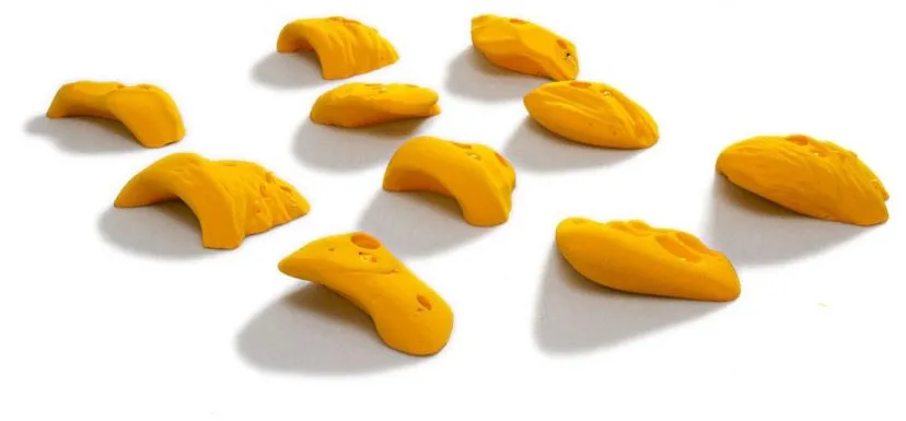 Il set Smog contiene dieci prese maniglie ronchie grandi da arrampicata, realizzate in poliestere.