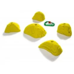 Il set Smog contiene cinque prese miste da arrampicata, realizzate in poliestere.